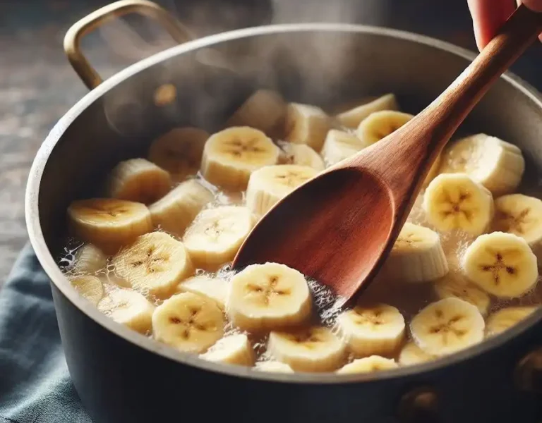 boiling banana in a saucepan